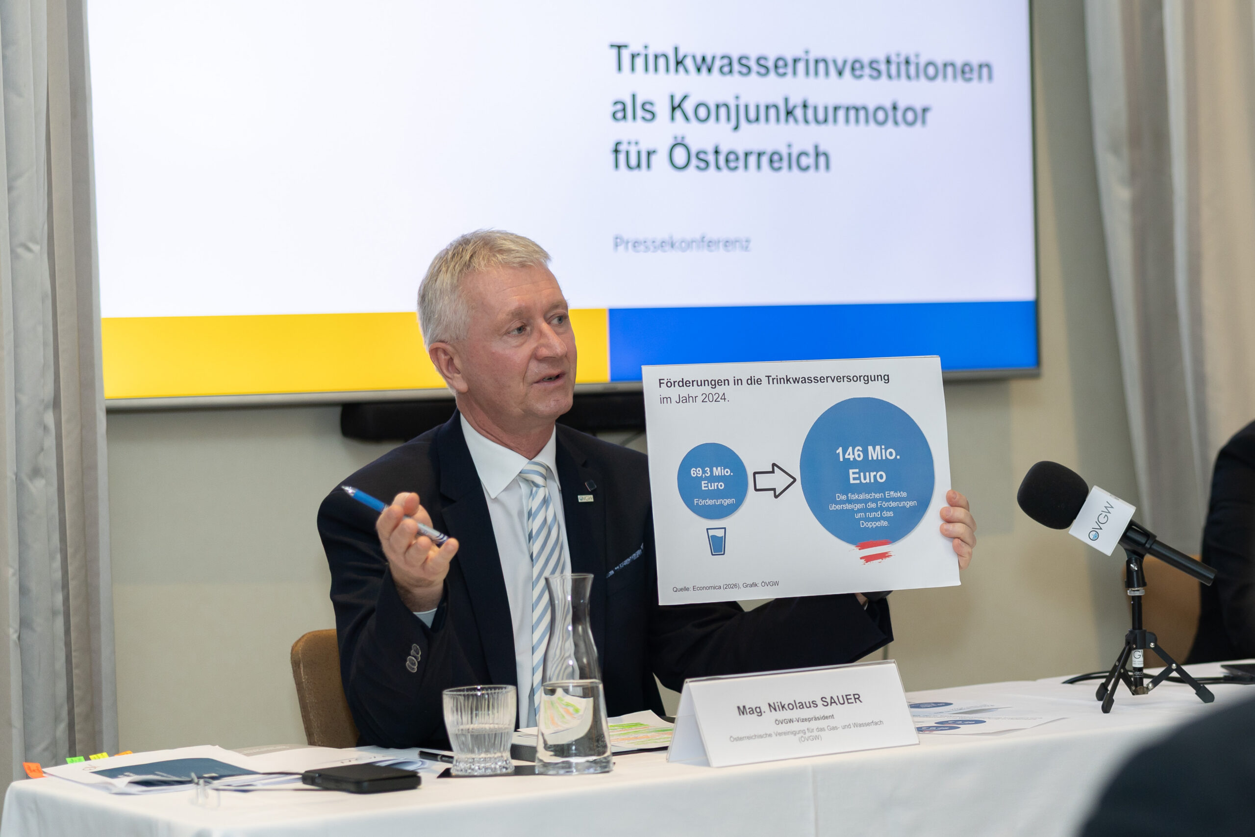 „Kofinanzierung rechnet sich!“, so ÖVGW-Vizepräsident Mag. Nikolaus Sauer und ergänzt: „Von den getätigten Investitionen in die Trinkwasserwirtschaft profitieren alle – und am meisten die Bevölkerung durch eine gesicherte Trinkwasserversorgung. Vor allem die technischen Anpassungen an den Klimawandel sowie der Erhalt der in die Jahre gekommenen Infrastruktur sind sehr kostenintensiv. Diese Investitionen sind auch ein guter Motor, um die geringe österreichische Konjunkturdynamik anzutreiben.“