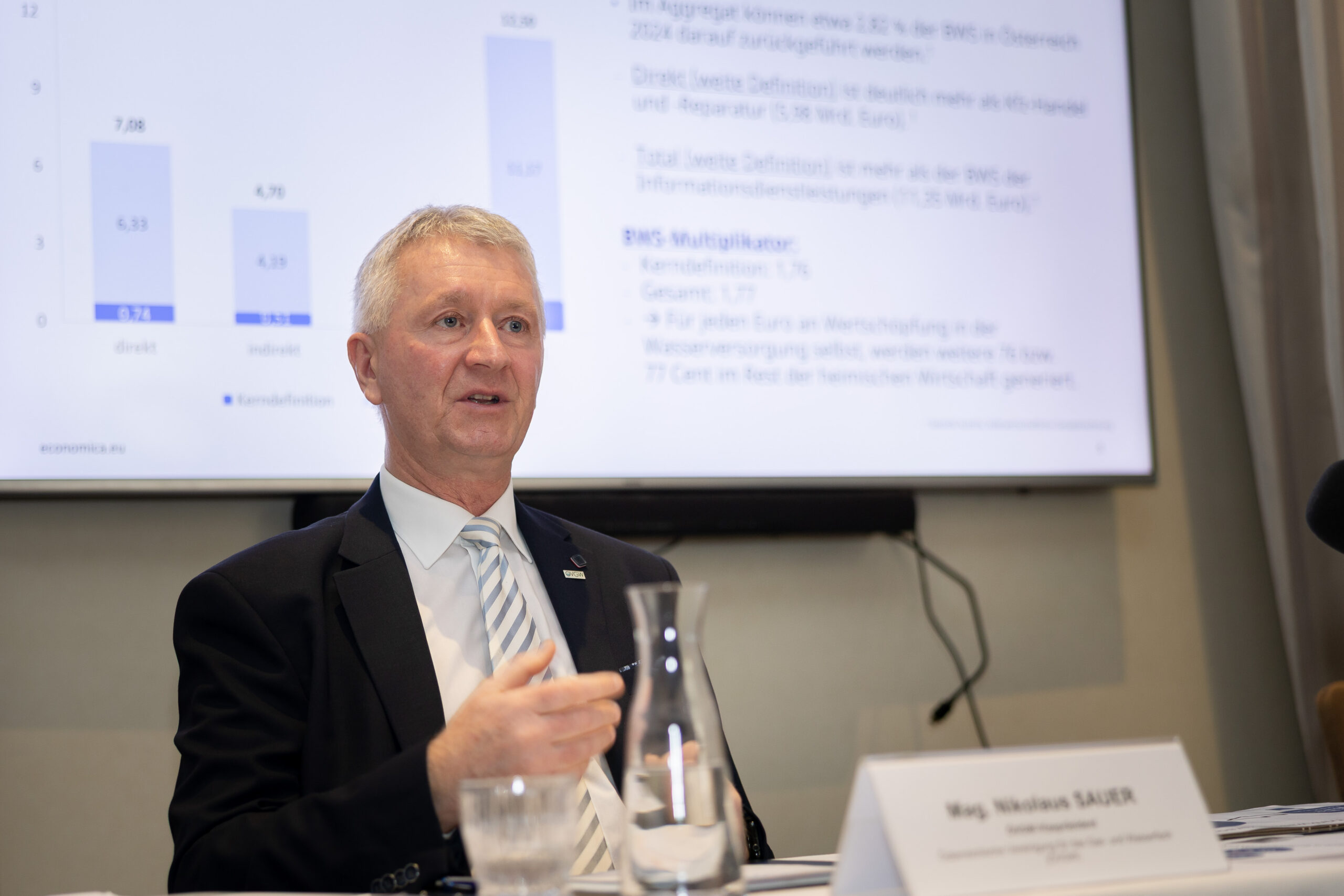 Die mit den Investitionen in die Trinkwasserversorgung in Zusammenhang stehenden Beschäftigungseffekte betrugen allein für das Jahr 2024 mehr als 3.100 Arbeitsplätze. So viele Menschen sind laufend damit betraut, auch zukünftig eine hochwertige und sichere Wasserversorgung zu gewährleisten. Durch den Bezug von Vorleistungen aus anderen Bereichen der Wirtschaft stellt die Trinkwasserversorgung einen bedeutenden Wirtschaftsfaktor dar und trägt so zu Wertschöpfung und Beschäftigung bei. „Für jeden in die Trinkwasserversorgung investierten ‚Förder-Euro‘ werden zum Beispiel bei einer Förderquote von 15 Prozent 6,48 Euro an Investitionen bzw. 4,40 Euro an inländischer Wertschöpfung generiert. Eine Win-win-Situation für alle“, sagt Nikolaus Sauer, Sprecher des Wasserfachs.