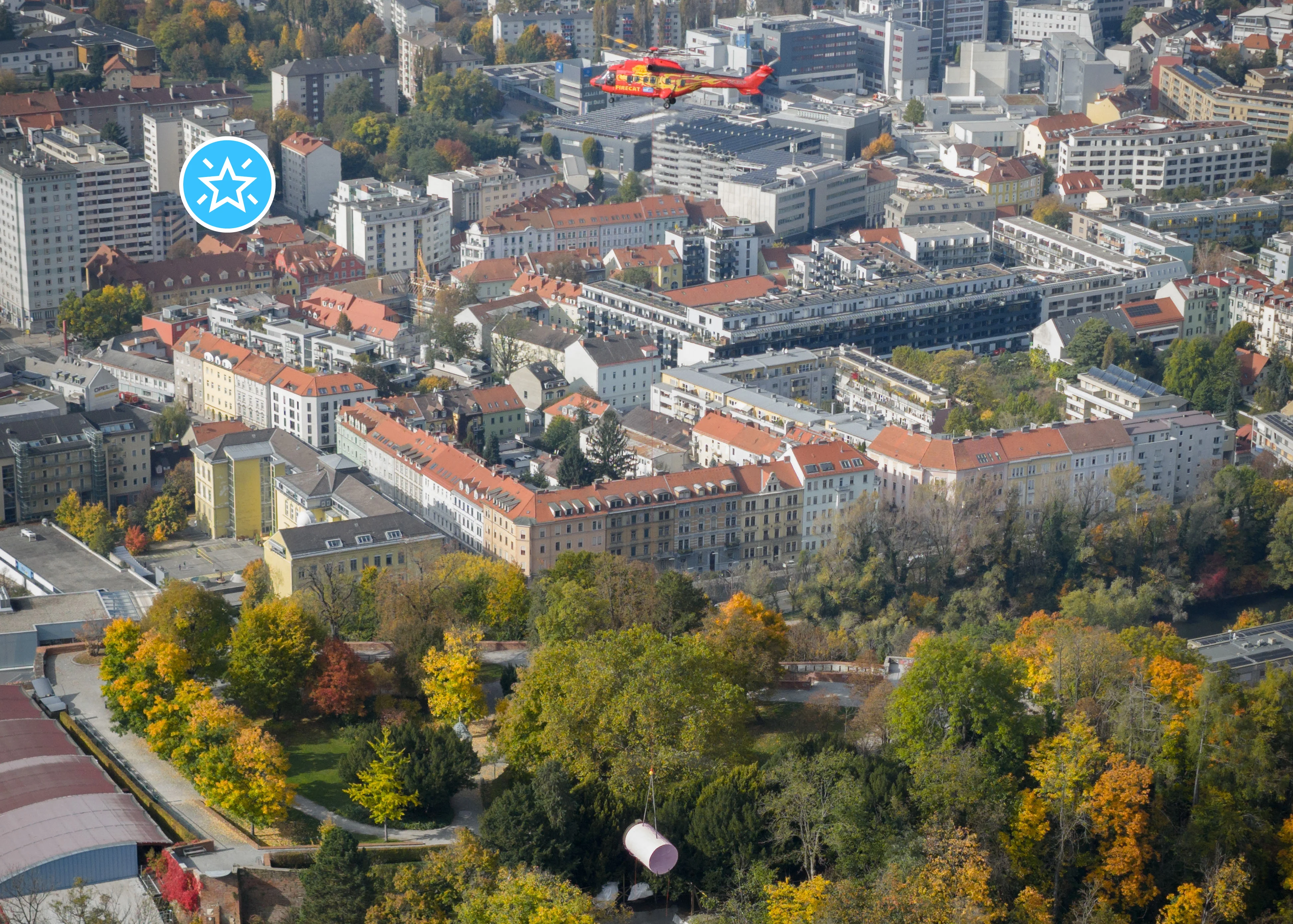 „Trotz enger Platzverhältnisse, Naturschutzauflagen und Denkmalschutz konnten wir mit innovativen Lösungen – inklusive Hubschraubertransport – eine moderne, zuverlässige Wasserversorgung für den Schloßberg sicherstellen“, sagt Projektleiter DI Philipp Schauer von der Holding Graz.