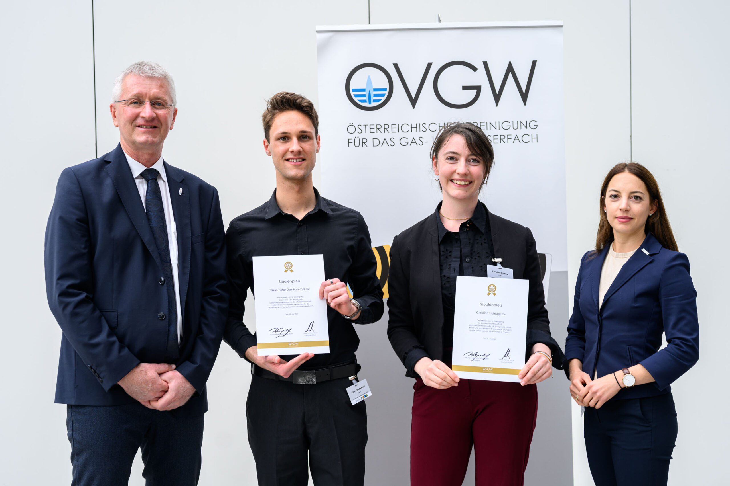 Heuer wurden zwei Studienpreise zum Thema Wasser vergeben. Für ihre herausragende Arbeiten wurden DI Kilian Deinhammer, BSc und Christine Hufnagl, BSc, ausgezeichnet. Kilian Deinhammer beschäftigte sich in seiner Arbeit mit der „Identifikation geeigneter Aktivkohlen für die Entfernung von PFAS bei der Trinkwasseraufbereitung“. Die „Bewertung verschiedener Probenahmestrategien für das Monitoring von Spurenstoffen in Flüssen“ war der Titel der Arbeit von Christine Hufnagl.